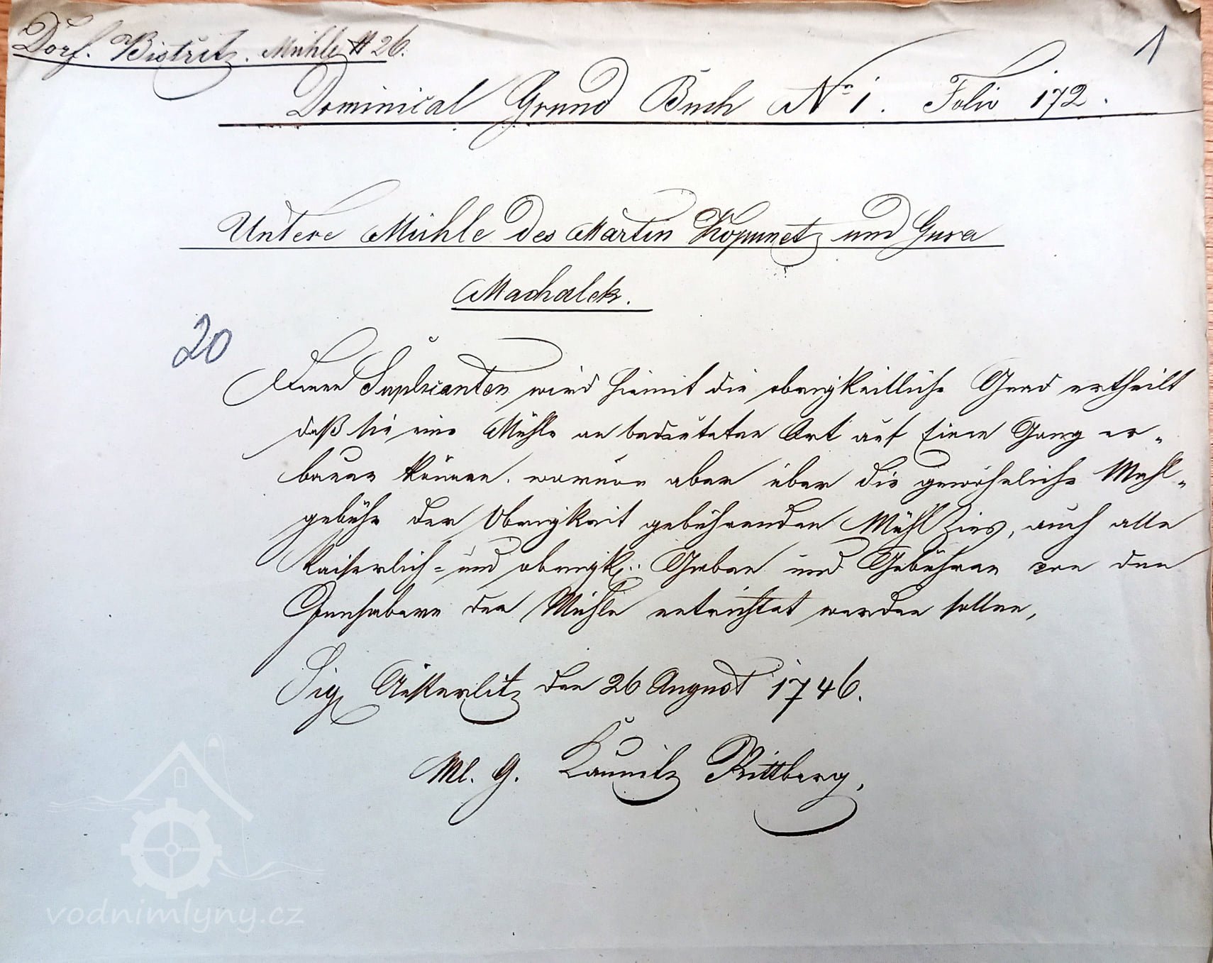 1746 - Martin Kopunetz a Juraj Machdalík (povolení k výstavbě mlýna)