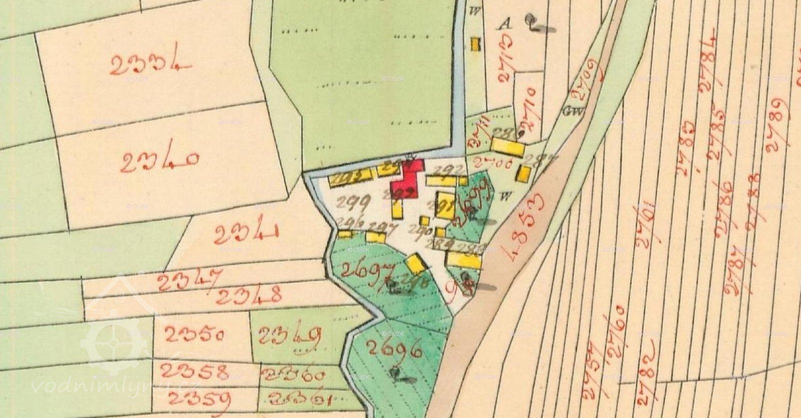 Chátrající mlýn o několika budovách stojí o samotě jihozápadně od obce Újezd. Některé budovy jsou zříceny, jiné zarůstají vegetací.