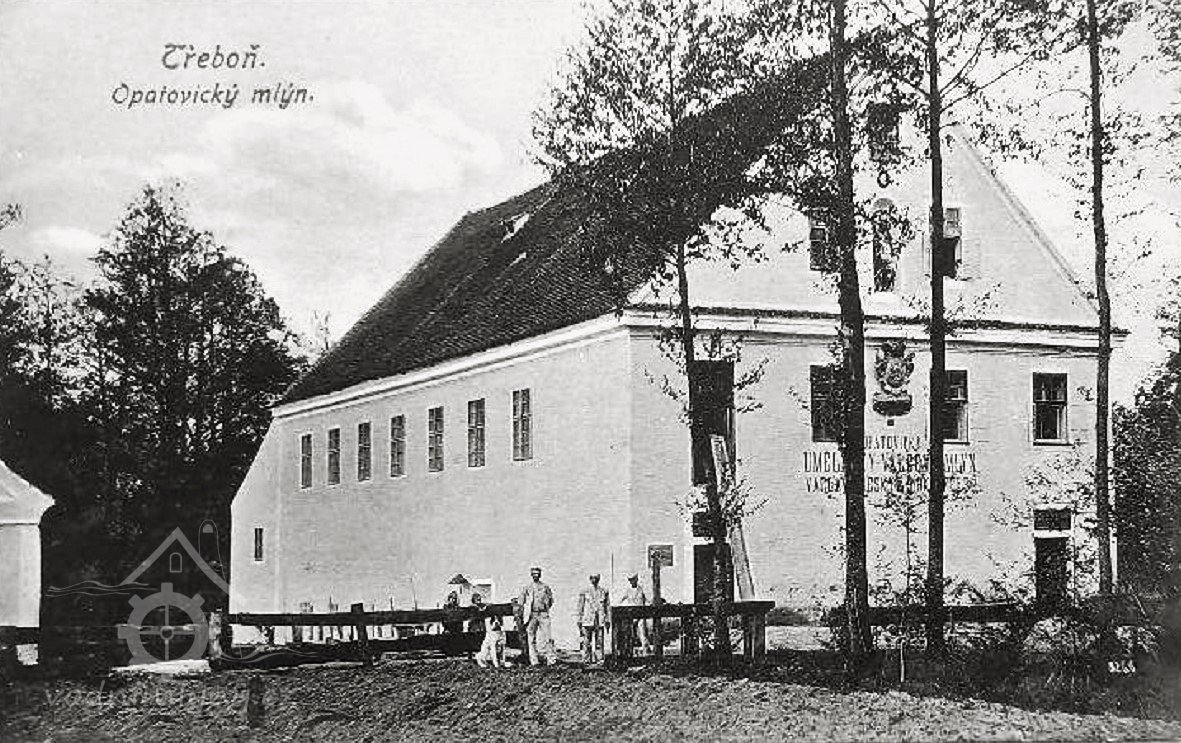 hlavní, jižní průčelí s nápisem "Opatovický umělecký válcový mlýn, Václav Břeský z Birkenfelsu", cca poč. 20. st., © z archivu rodiny Břeských (Vojtěšky Försterové)