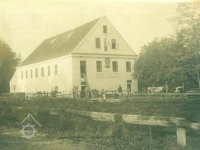 mlýn z jihozápadu; vzadu je vidět část přistavěného domku, cca poč. 20. st., © foto archiv rodiny Břeských, z publikace R. Novákové "Opatovický mlýn na Zlaté stoce u Třeboně"