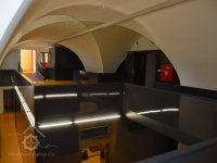 bývalá provozní polovina 1. patra mlýna; ve stropě zaslepené otvory pro technologii, 1960-62, Karel Skopal st., z publikace R. Novákové "Opatovický mlýn na Zlaté stoce u Třeboně"