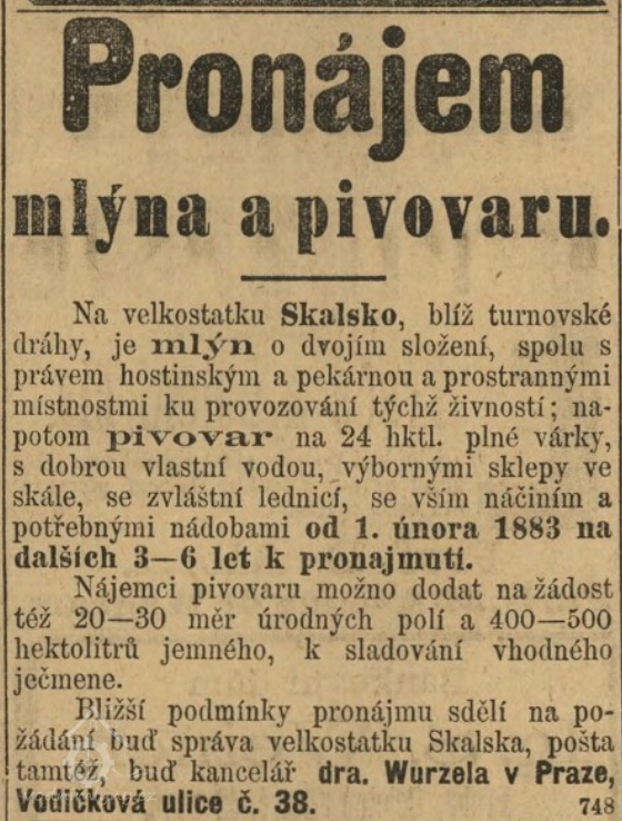 V roce 1624 byl mlynář Jakub Pecháček vykonával úřad skalského rychtáře a mlýn prodal svému synovi Adamovi za 400 kop Míšeňských při zachování stejných povinností vůči kostelu sv. Michala.