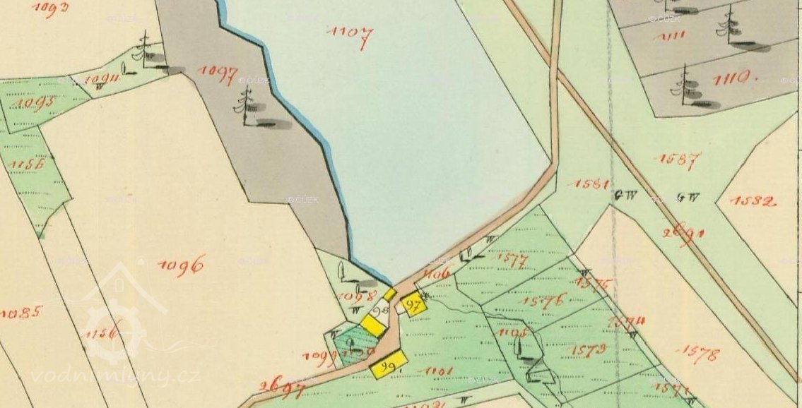 Popis1930: 2 kola na svrchní vodu, hltnost 2 x 0,086 m3/s, spád 3,65 a 3,12 m, celk. výkon 2,72 HP