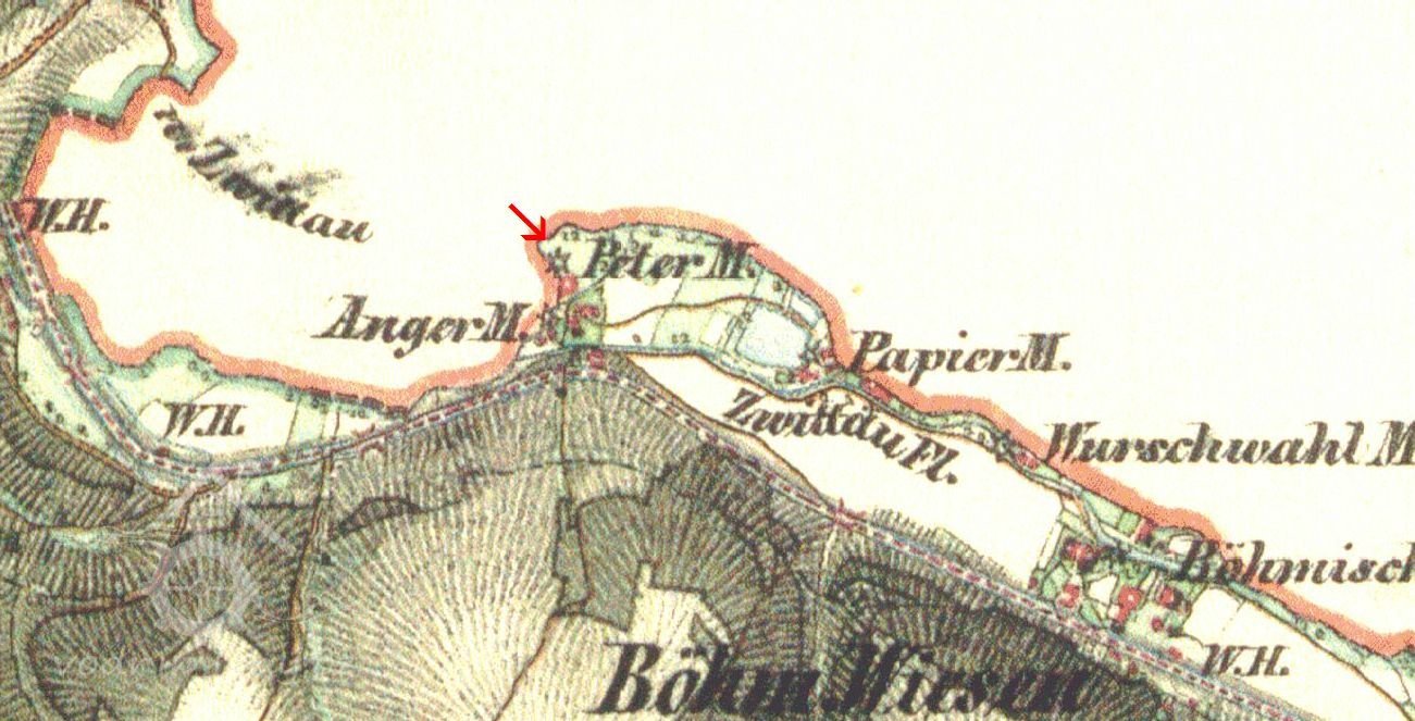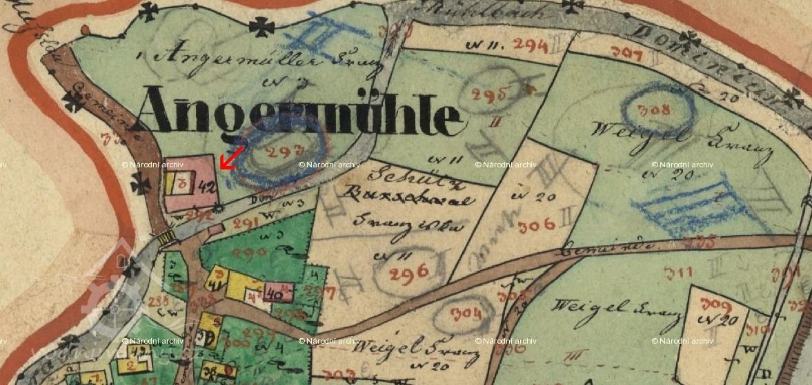 Mlýn měl čp. 3 a v roce 1839 mlýn vlastnil Angermüller Franz. (RŠ)