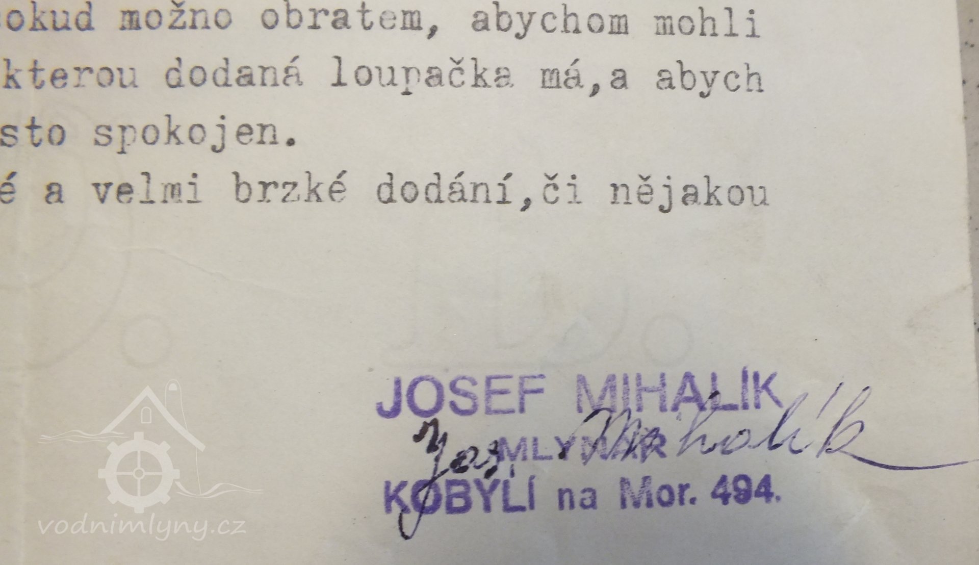 r, 1829 - poslední uváděný držitel vodního mlýna byl Václav Hauzner