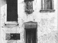 V sz průčelí 2 kamenné desky, zachycené na tomto místě již na nejstarších fotografiích: