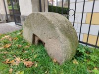 2) pod ní obdélný kámen s letopočtem 1645, mezi číslicemi kruh se stylizovaným znamením Jana Filipa Husmanna. Patrně část překladu dveřního portálu.