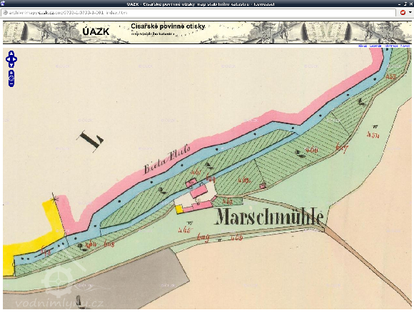 Ke mlýnu vedl náhon, zakreslený na historických mapách.