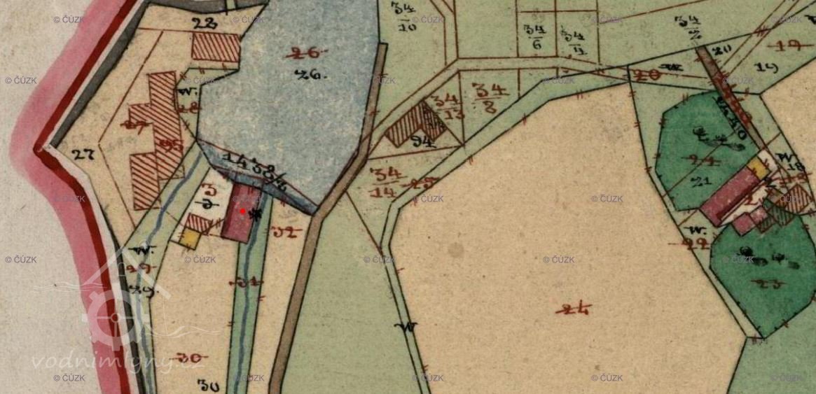 Popis1930: 1 kolo na svrchní vodu, hltnost 0,082 m3/s. spád 5,16 m, výkon 5,64 HP