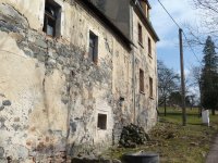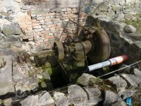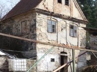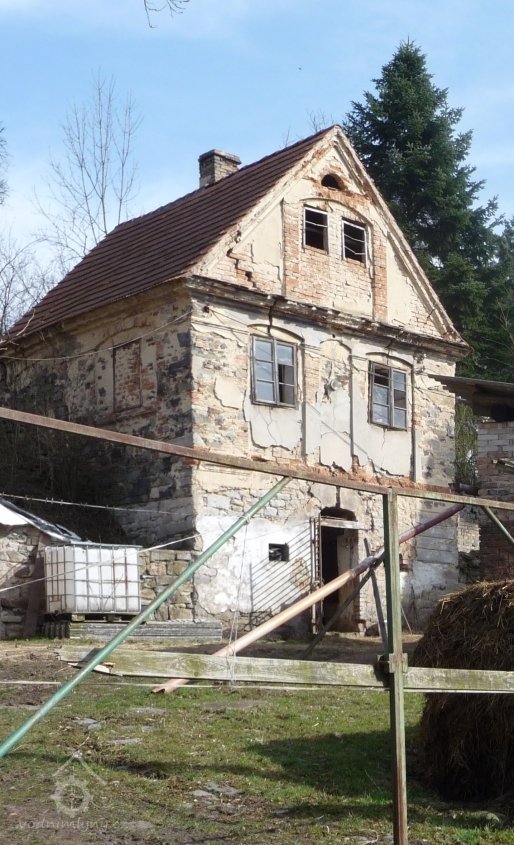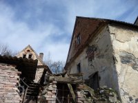 U menší budovy ve dvoře jsou patrny stopy po vodním díle - lednici.
