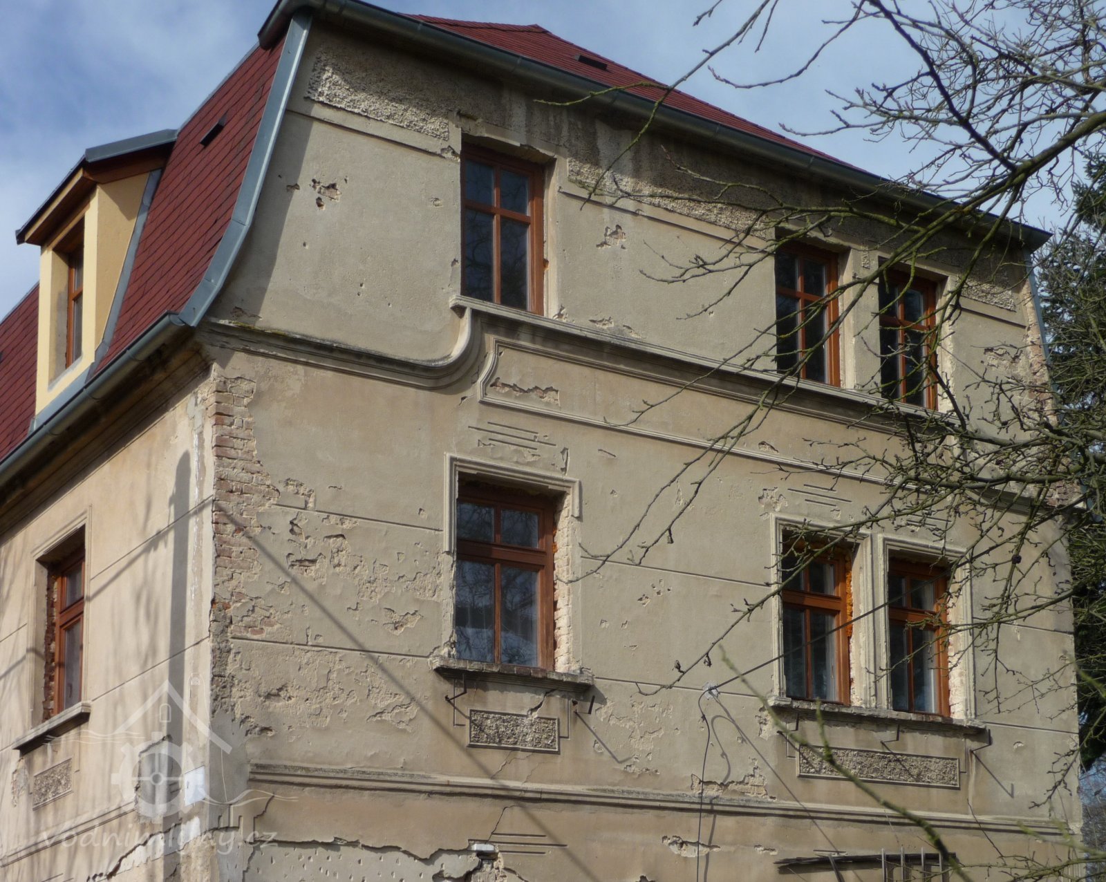 Velká obytná budova a menší budova se štítem ve dvoře mají ozdobnou omítku.