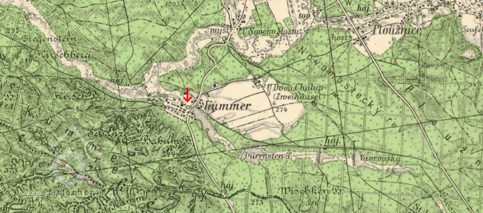 V roce 1930 byl majitelem mlýna a pily Ant. Motz. Obec Hradčany se nazývala Kummer, později Kummer am See, Hradčanský potok a rybník je uváděn jako Kummer.