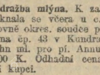 30.4.1808 Jan Sýkora prodal mlýn Antonínu Gürtlovi s manž. Annou za 9000 zl.