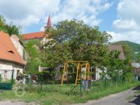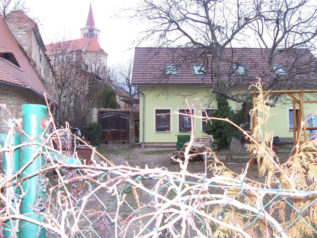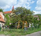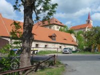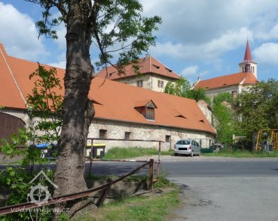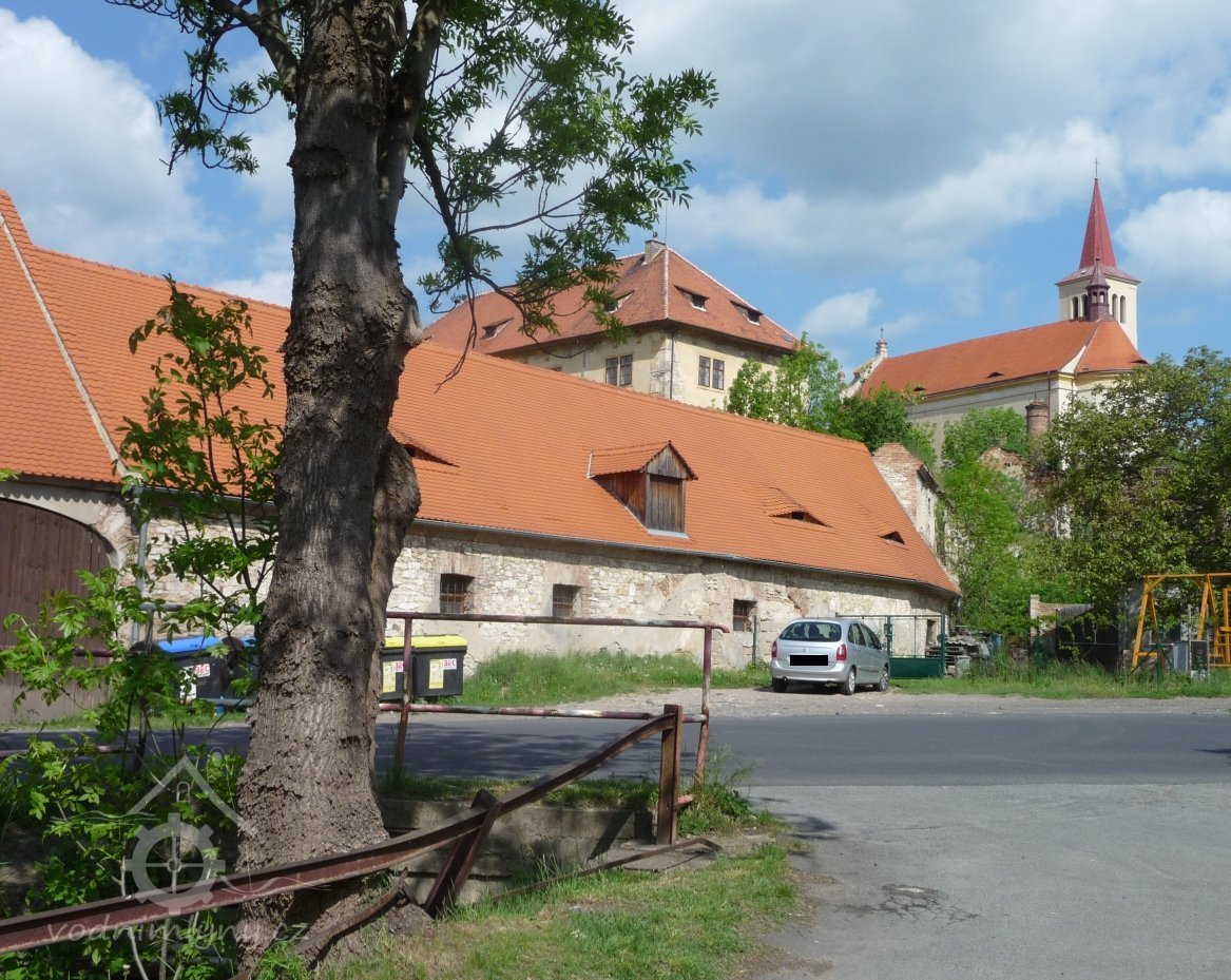 Uprostřed obce pod hospodářskými budovami zámku