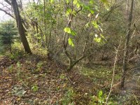 Za železniční tratí v lese je zarostlé stavidlo a část zděného zarostlého náhonu.