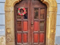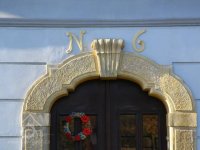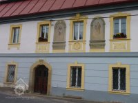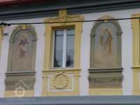 Budova nese bohatě zdobené hlavní průčelí s dominujícími okny ve štukových rámech, v patře s ušima a parapetními panely. Mezi okny jsou umístěna dvě pole s malbou P. Marie a sv Josefa. Shodně s okny je koncipován vstupní portál s dochovaným číslem domu.