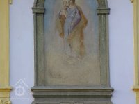 Fasáda mlýna směrem do ulice je zdobená - plastická omítková výzdoba, patrně iniciály majitele nebo mlynáře, malované obrazy světců.