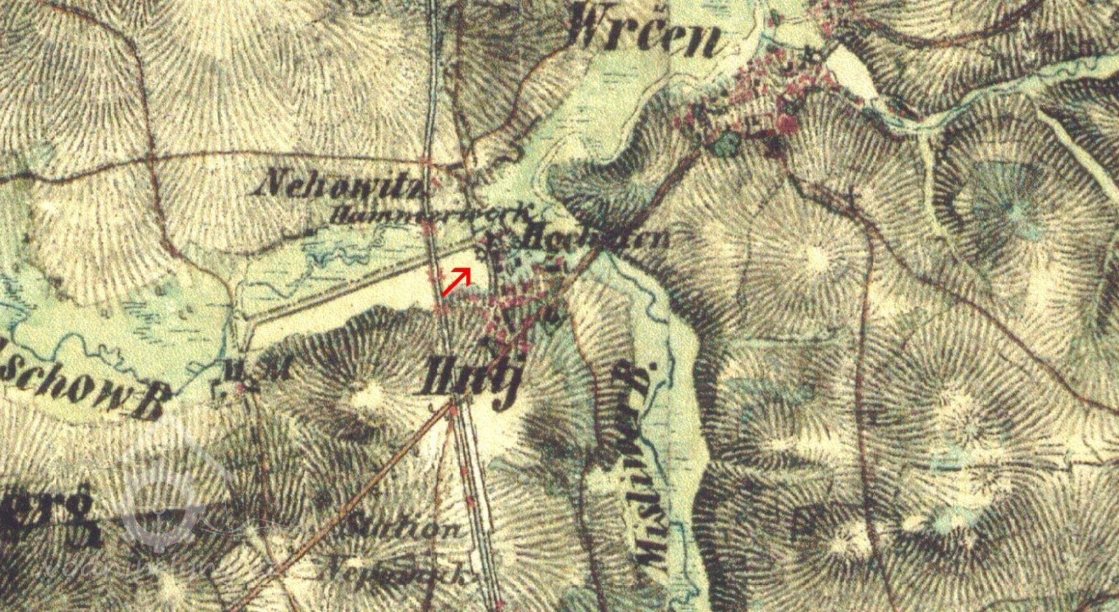 Slohové a časové určení: Železná huť zvaná zelenohorská existovala mezi Vrčení a Dvorcem podle literatury již v 2. polovině 17. století či dokonce v předbělohorském období. Poslední práce zabývající se historií a vývojem zelenohorské železárny však pro existenci železáren v tomto období nenašla dostatek dokladů. Písemnými prameny je spolehlivě doložený až rozvoj areálu od počátku 18. století - do roku 1730 hutě pracovaly, byl zřízen rybník pro pohon kováren (dnešní Panský rybník, dodatečně předělený tělesem železniční trati v 60. letech 19. století) a tří hamrů, v té době měl být postaven i dům pro správce železáren (č. p. 77) a kolem roku 1760 protilehlý dům čp. 78 (zbořen r. 2013). Areál železné huti je zachycen na mapě I. vojenského mapování prováděného v 60. letech 18. století. Na mapě je již zakreslena poloha dnešního objektu č. p. 77 nacházejícího se při jižním konci hráze Panského rybníka, severně od správní budovy je pod hrází rybníka zakreslený objekt hamru (objekt je označen vodním kolem a nápisem „ Eisen Hamm tedy železný hamr). Na základě situace zachycené na II. vojenském mapování z poloviny 19. století vyplývá, že právě při severním konci hráze rybníka stála vysoká pec (na mapě označena jako „ Hochofen “) a hamr. Budova dnešního mlýna tedy tvořila v 18. a 19. století jádro zelenohorských železáren. Mezi budovou č. p. 77 a vysokou pecí se při hrázi rybníka nacházel další objekt hutí, který je zakreslený na císařském otisku stabilního katastru z roku 1837 v místech pozdější olejny jako nespalný. Výroba ve vysoké peci byla ukončena v roce 1871, hamry však byly v činnosti až do roku 1885. Na mapě III. Vojenského mapování z konce 70. let 19. století je areál bývalých hutí již označen jako továrna na olej („Óhl-Fh“). Knížecí olejová továrna, kde se lisoval řepkový olej, v areálu bývalých hutí tedy fungovala od 70. let 19. století. Olej se zde lisoval až do 2. světové války.
