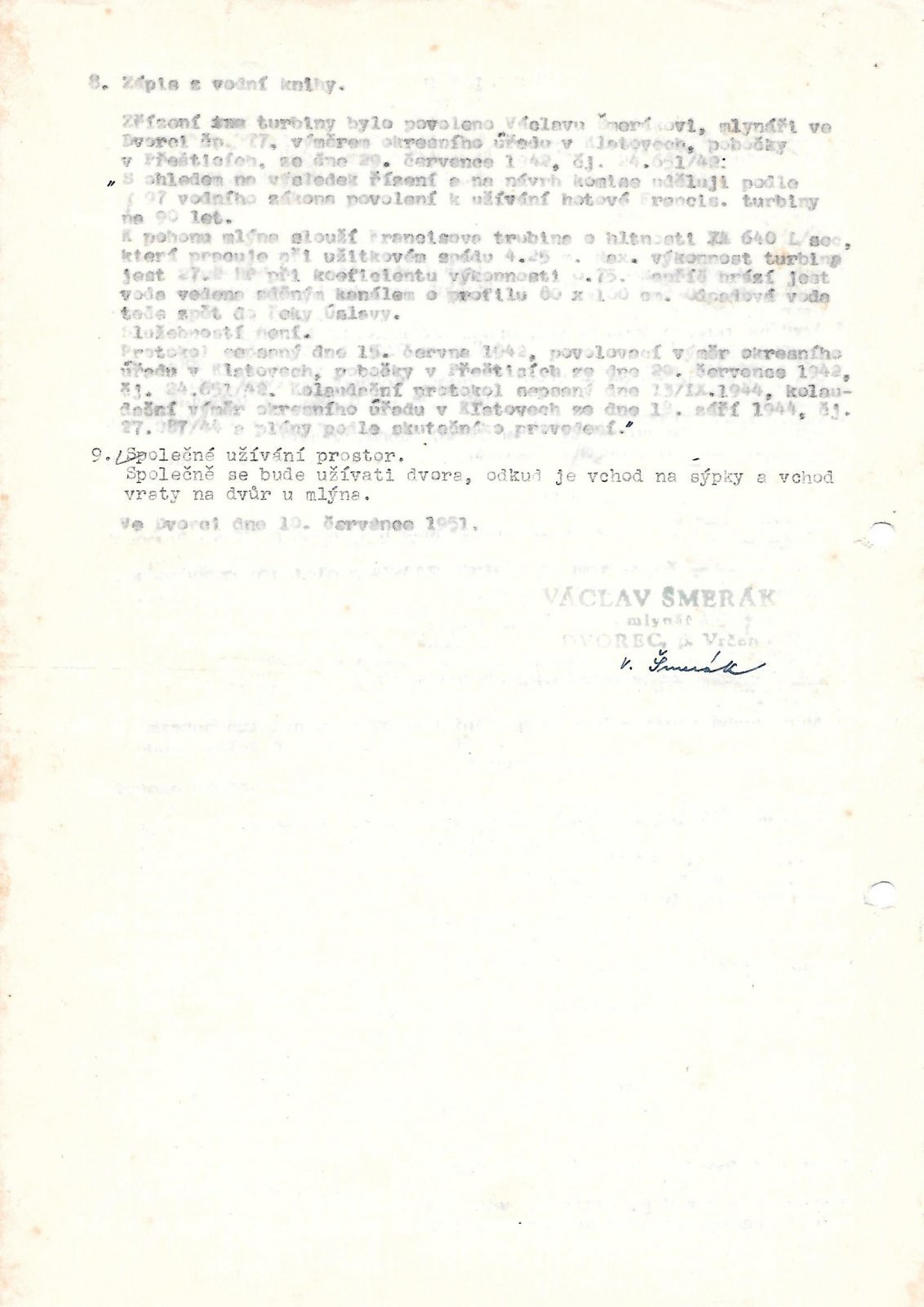 1943 - stará Jonvalova turbína nahrazena Francisovou turbínou, ve mlýně byly 2 turbíny, ale mlelo se vždy jen jednou