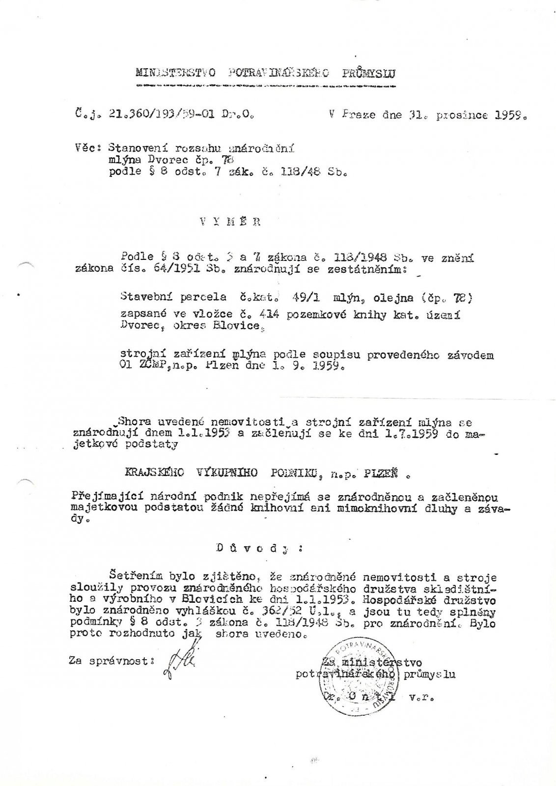 Z průzkumu vyplývá, že železárny ve Dvorci vznikly pravděpodobně již před třicetiletou válkou v prostoru dnešního areálu, rozvoj nastal zejména v 18. století - do roku 1730 byl zřízen rybník pro pohon kováren a tří hamrů a snad postaven i dům pro správce železáren (Čp. 77), kolem roku 1760 protilehlý dům Čp. 78.Výroba ve vysoké peci byla ukončena v roce 1871, hamry byly v činnosti až do roku 1885. Později byla v areálu výrobna řepkového oleje (do 2. sv. války), roku 1920 zřízen mlýn Václava Smeráka. Z dobových map je patrné stáří jednotlivých budov, dochována je rovněž dílčí plánová dokumentace z 1. poloviny 20. Století. Uvažované území pod hrází Panského rybníka tvoří jádro původního osídlení Dvorce, ve kterém byla od 17. století provozována železářská výroba. Komise doporučila s ohledem na stáří lokality a její průmyslovou tradici chránit toto území jako celek v následujícím rozsahu: budova bývalého mlýna, objekt bývalé olejny se skladištěm, hospodářským objektem a ohrazením ze struskových tvárnic, bývalá správní budova čp. 77 včetně navazujících pozemků.
