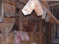 Násypka, mlecí kámen - vyřazené, 2015, © Helena Špůrová, (Prvky na obrázku: mlecí kámen, zásobník, násypka)