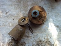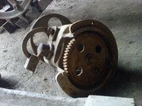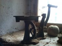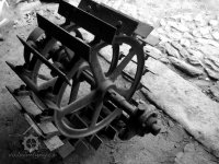 Demontované zbytky zařízení, 2015, © Lenka, (Prvky na obrázku: transmise, řemenice, převody, koukolník)