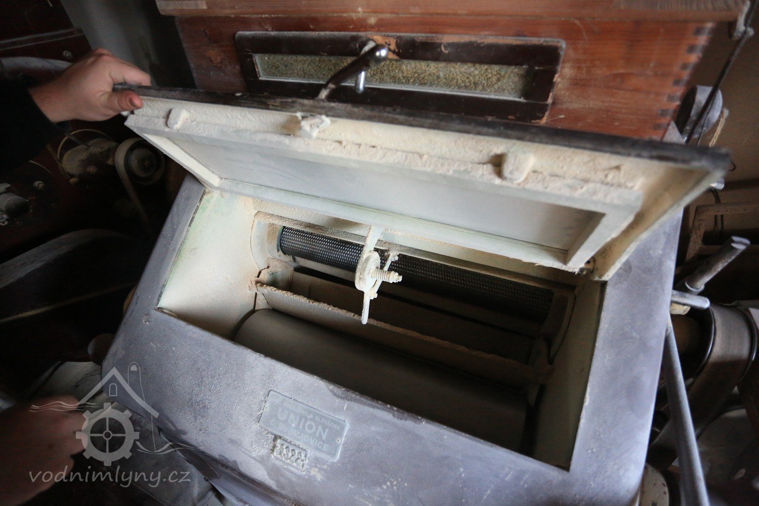 • Válcová stolice s 1 párem hladkých válců v dřevěné skříni