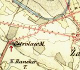 „Ostrolovský mlýn, u rybníku stejného jména, který zde tvoří Doubravka. Mlýn s čp. 1 patří k obci Ždírec, panství Polná, čáslavský kraj. Leží čtvrthodiny západně od Ždírce a od Krucemburku je vzdálen třičtvrtěhodiny západně. Bydlí tu pouze mlynář spolu se svou rodinou, která se skládá z osmi katolických duší.“
