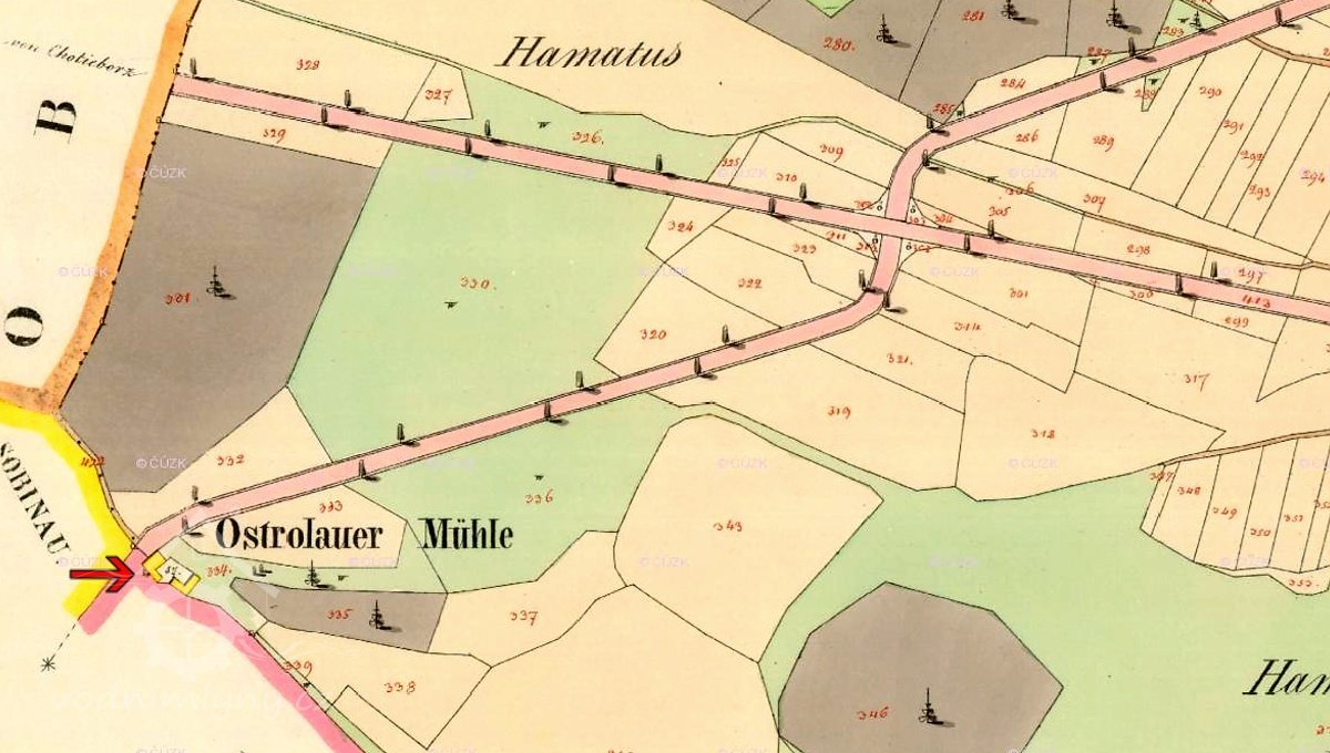 v roce 1838: Fiala Franz - mlynář, čp.1, stavební parc. 57, mlýn stál mimo obec v trati Hamerska