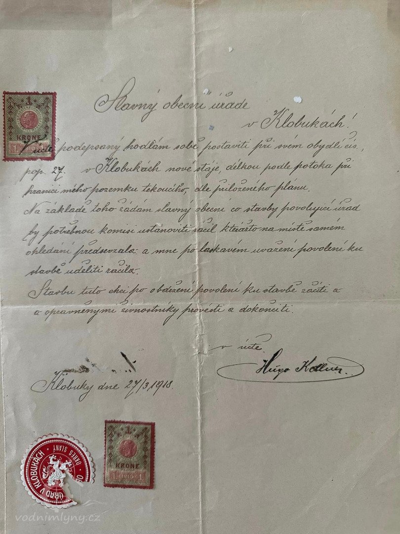 V roce 1930 byl majitelem mlýna Hugo Kellner, potok se nazýval Zlonický.