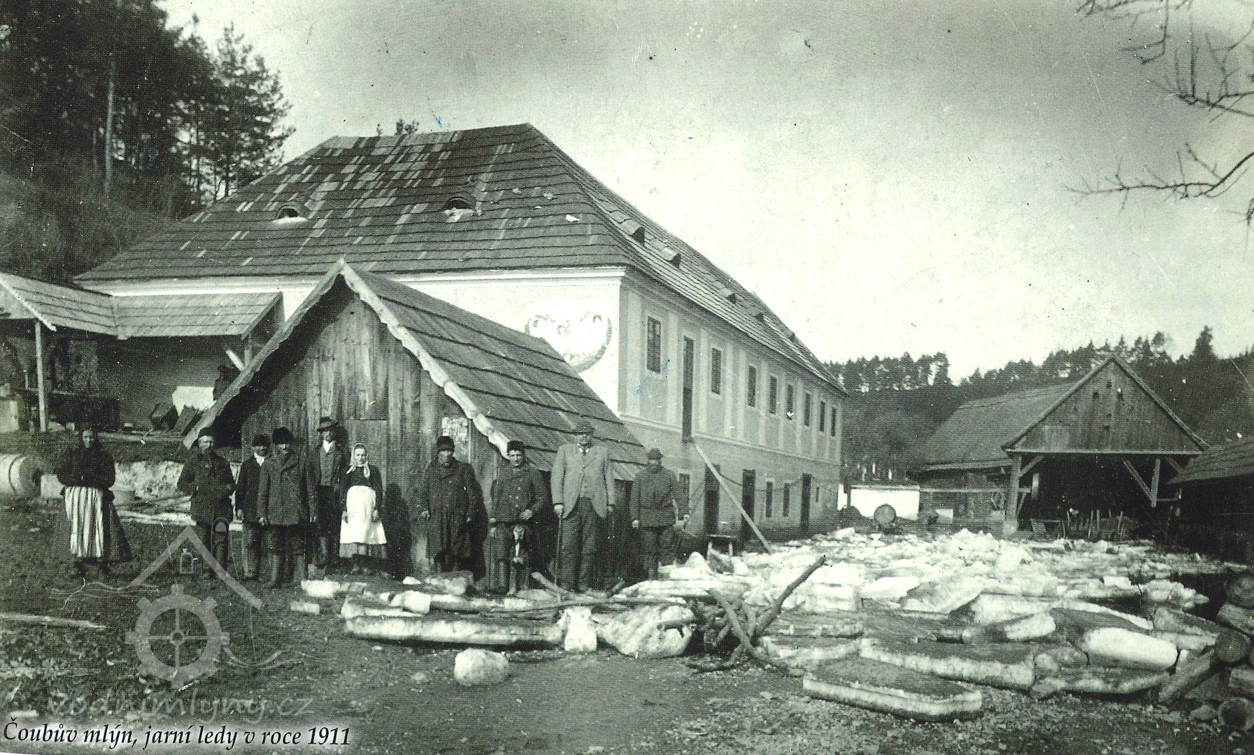 1589 Jaroslav Libštejnský z Kolovrat pohnal před soud Jeronýma Hrobčického na Manětíně, že lidé Hrobčického, když přišli k Čoubovu mlýnu, nově udělaný jez rozkopali a tím mlynáře v bídu uvedli. Král Rudolf poručil Hrobčickému, aby dal jez opravit a mlynáře víckrát neobtěžoval.