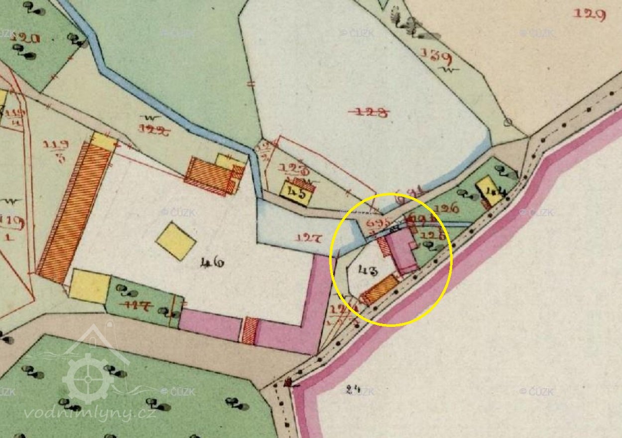 Mlýn je zakreslen i na mapě III. vojenského mapování z let 1877-80.