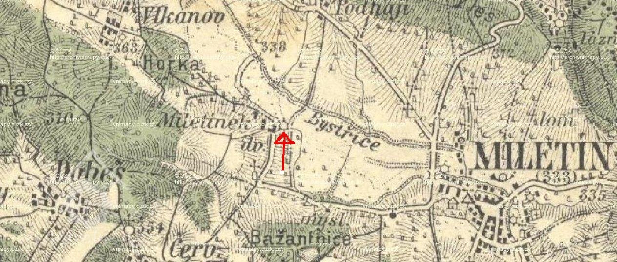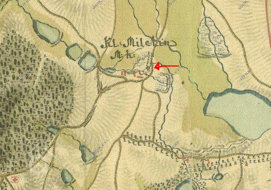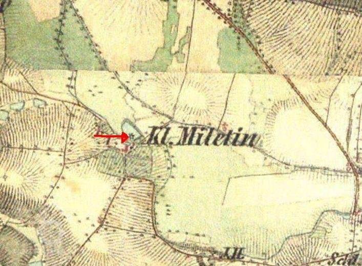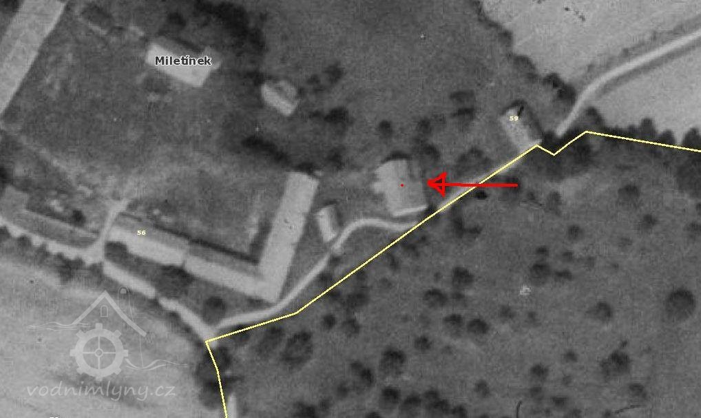 Mlýn Miletínek je zobrazen na I. voj. mapování v letech 1764-68. Na císařském otisku z r. 1841 bylo číslo stavebního pozemku mlýna 43 pod vodní nádržkou č.parc. 127 na náhonu z říčky Bystřice. Indikační skica neexistuje. Tento mlýn najdeme i na II. vojenském mapování z let 1836-52.