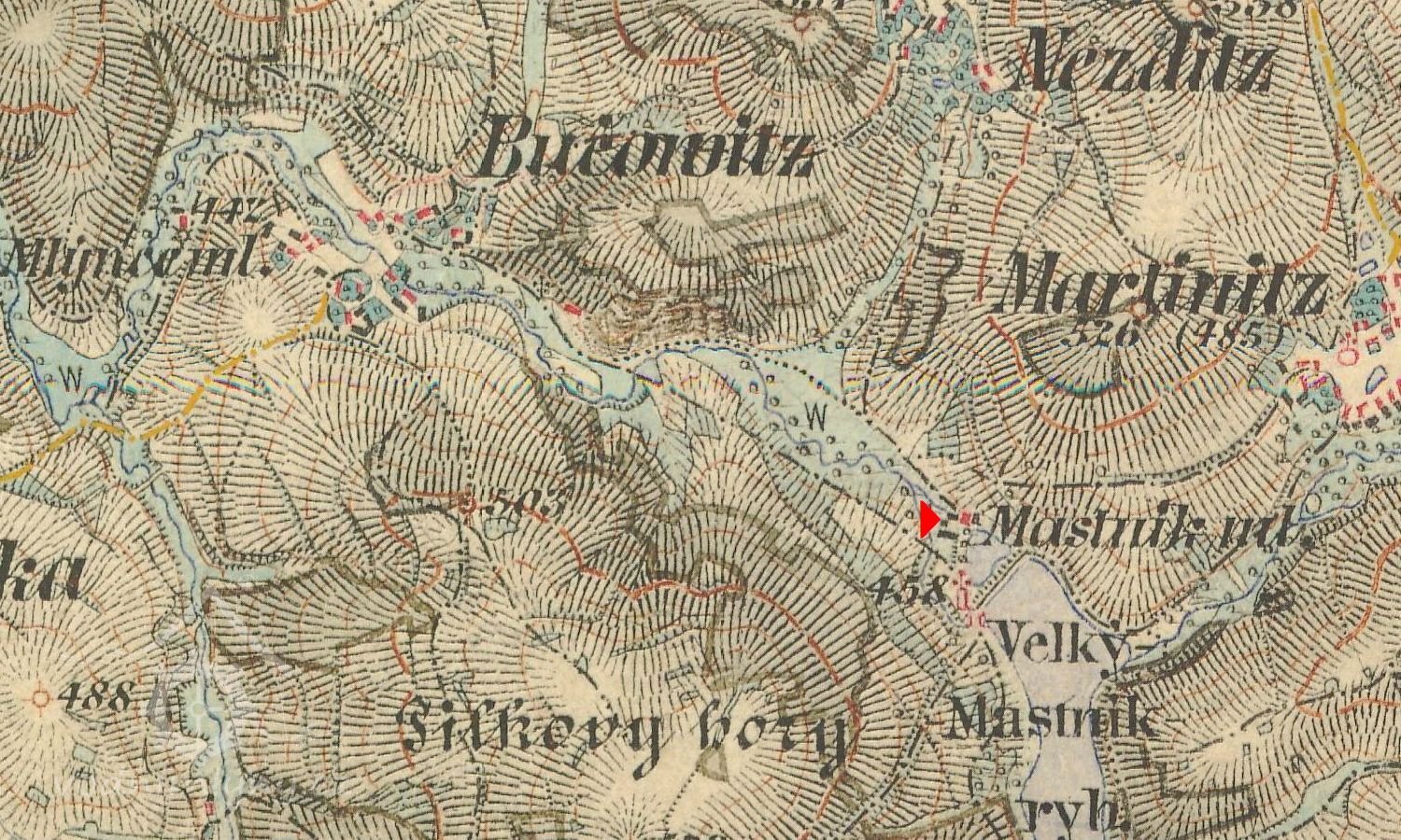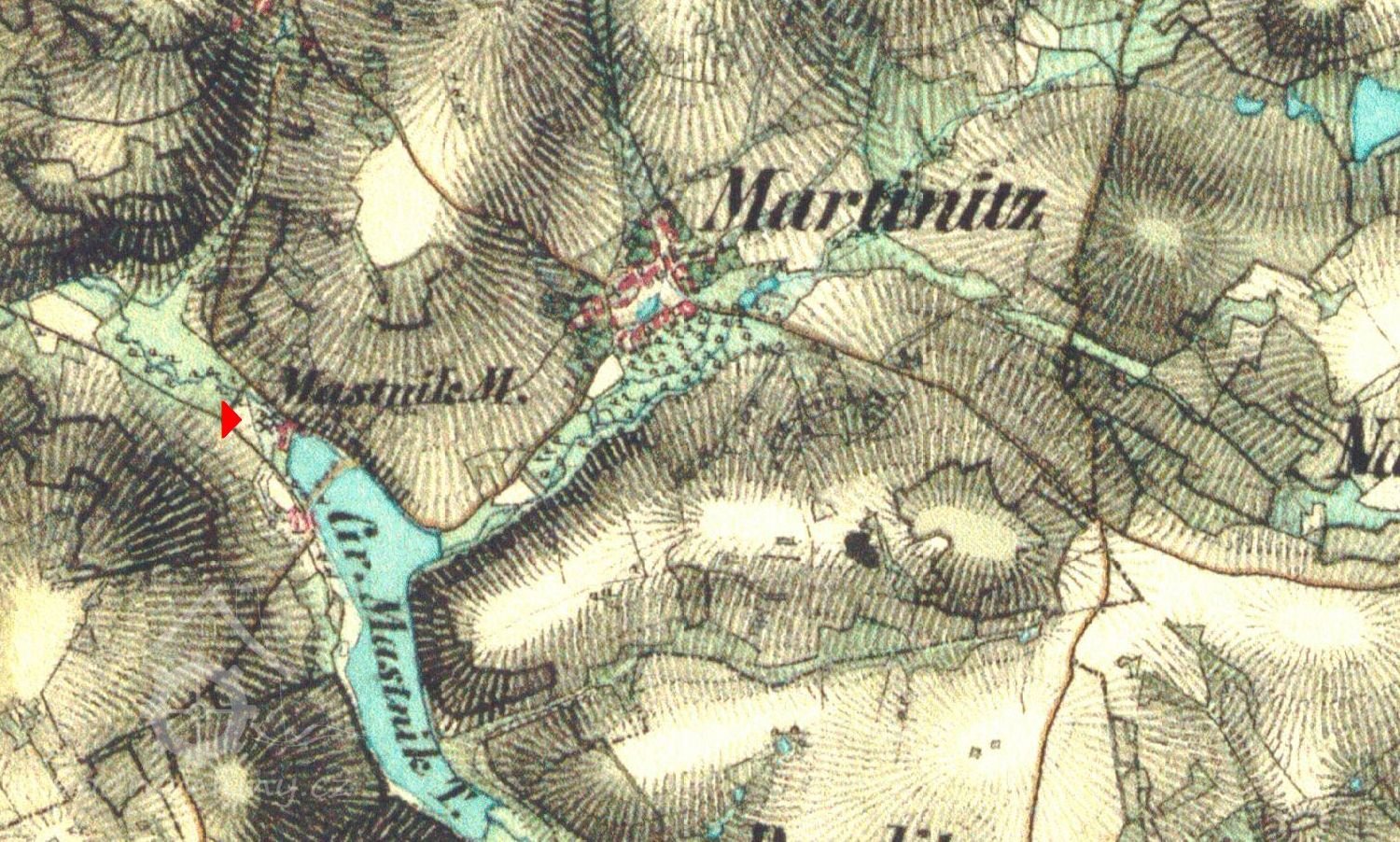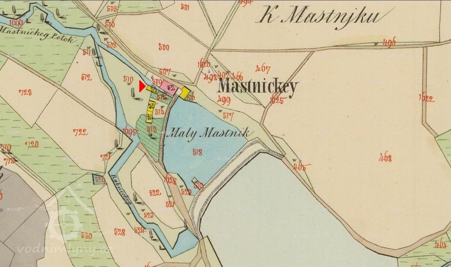 Nynější mlýn ,,Mastník“ je už na třetím místě; první - dřevěný mlýn - stával pod ,,Horou“ asi prostřed západního břehu velkého rybníka, kterého za dřívějších dob nebylo. Tento mlýn prý shořel. I byl vystavěn nový pod nynějším mostem, který byl dříve dřevěný.