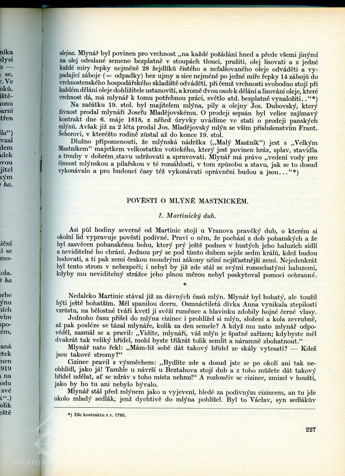 POVĚSTI O MLÝNĚ MASTNICKÉM.
