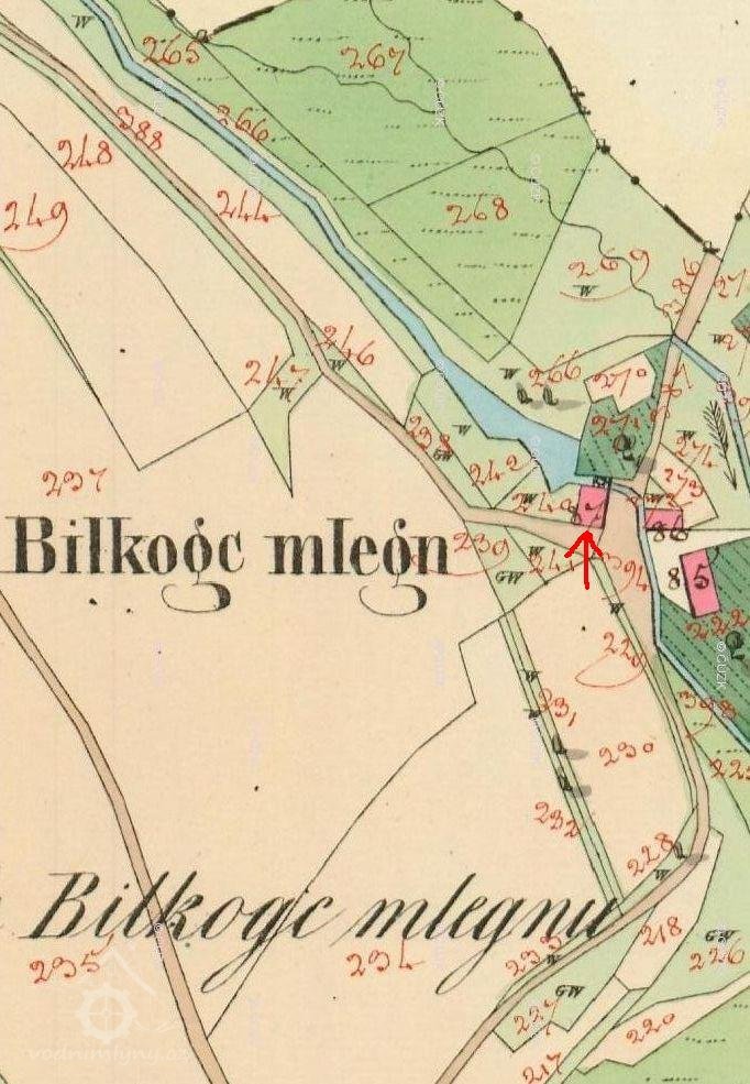 Bílkův mlýn je zaznamenán již na mapě I. vojenského mapování v letech 1764-68. V matrikách je uváděn jako mlynář Jan Gruber /1687-1729/.