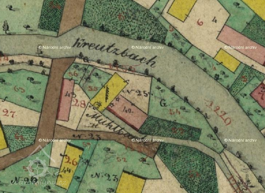 Popis1930: 1 kolo na svrchní vodu, hltnost 0,134 m3/s, spád 4,3 m, výkon 5 HP