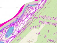 Mlýn se nachází 1,5 km od městského úřadu směrem na České Hamry