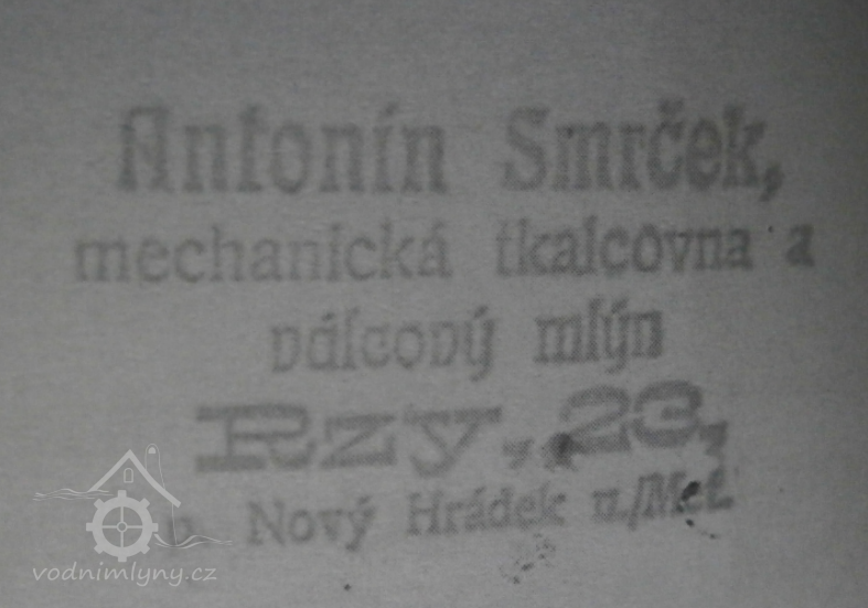1930 tkalcovna a mlýn (!) majitel Antonín Smrček