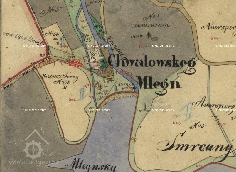 Držitel mlýna čís. 56, nyní Karel Vítek se zavazuje za uspořádání vody toho mlýna a odpadnutí uvedených břemen v 10 letých stejných lhůtách výkupní kapitál per 493 fl. 20 stříbra nebo 518 zl. rak. čís. k ruce panství chvalovickému do depozitní schránky c. k. zemského soudu v Praze i s vypadajícími 5% úroky skládati, bude ale ten samý také oprávněn tento kapitál s úrokama v kratší lhůtě na uvedeném místě složiti.