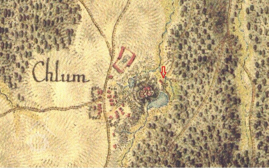 Mlýn patřil k hradu Chlum, který byl v majetku slavného rodu Slavatů z Chlumu. Byl vystavěn přímo pod kopcem, na kterém hrad stál. Rybník nad mlýnem byl součástí fortifikačnímu systému thradu. V roce 1635 získává obec Chlum s hradem a všemi statky Walter Deveroux jako zkonfiskovaný majetek rodiny Trčků. V roce 1534 byla celá ves vyplněna Švédy, v polovině 16. století je vše uváděno jako pusté.
