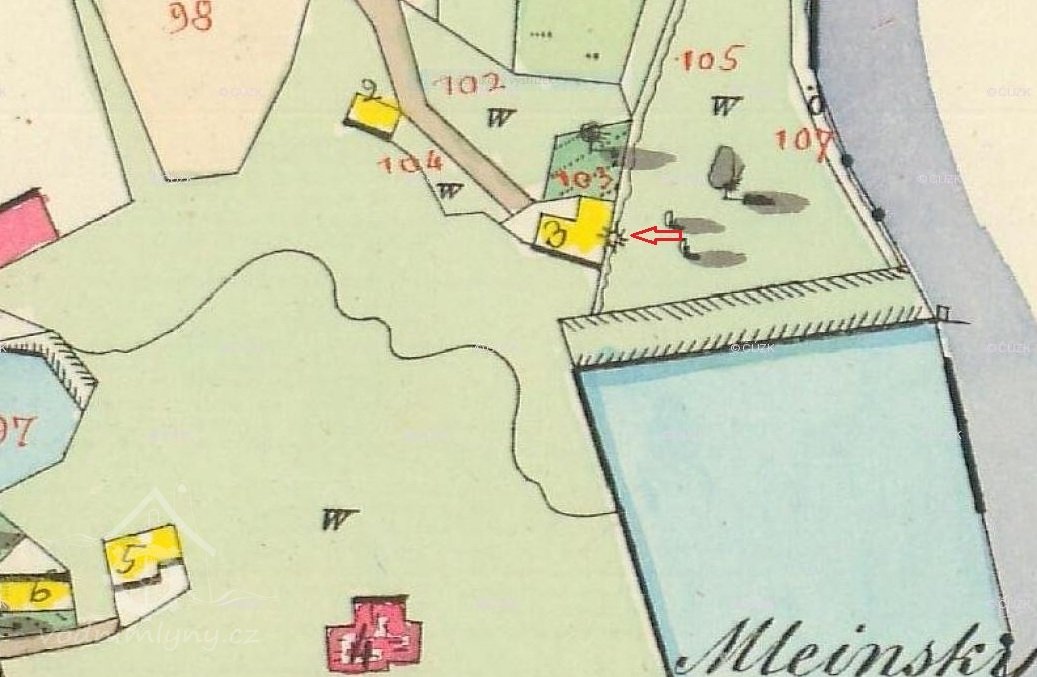 Mlýn je vyobrazen na I. vojenském mapování z let 1764-1668.