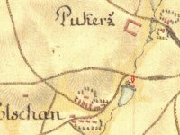 V 16. století bylo na Olšanském potoce mezi obcemi Nová Lhota a Třebešice vybudováno několik menších rybníků. U rybníka, který se nacházel mezi obcemi Olšany (dříve Wollschan, Volšany) a Pucheř (dříve Pucherz, Pukeř) stál mlýn. Rybník ani mlýn se nedochovaly, zanikly někdy 1. třetině 19. století, na mapách II. vojenského mapování ani stabilního katastru z roku 1838 již nejsou zakresleny.