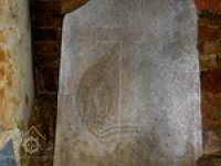 Na kameni je vyryt jetelový kříž. V dolní části je zbytek nápisu: