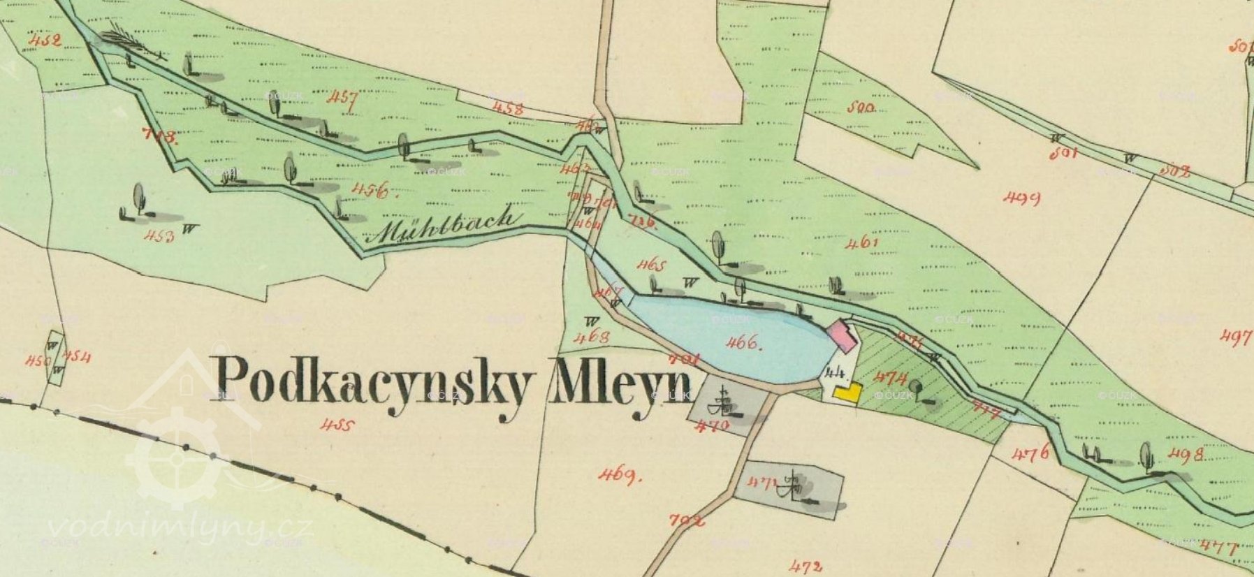 Mlýn je vyobrazen až na II. voj. mapování (1836 - 52)