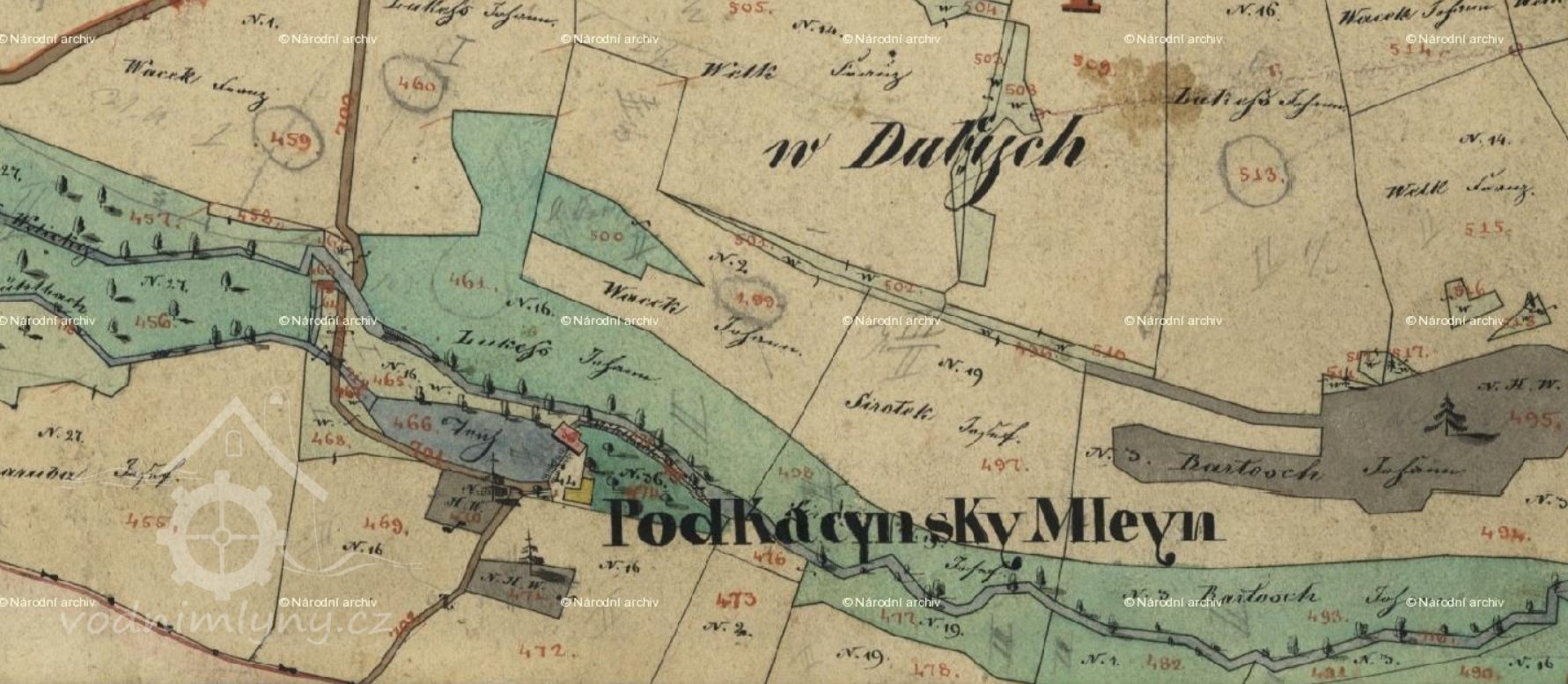 Podkáciňský mlýn je menší mlýn, doložený na mapě II. vojenského mapování, tedy v 1. pol. 19. stol. Mlýn je přestavěn, dochováno je hospodářské stavení.