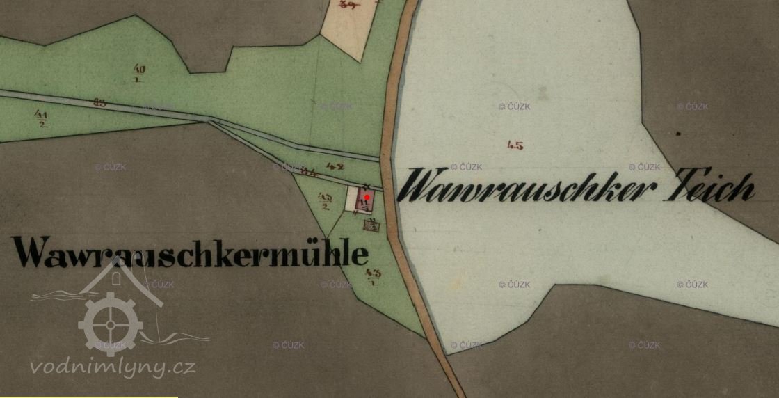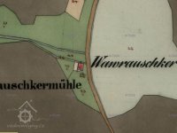 Rybníky v okolí Hradčan byly zakládány již v 15. století. Vavrouškův mlýn u Vavrouškova rybníka vznikl pravděpodobně později, je vyobrazen až na mapách II. vojenského mapování a na císařském povinném otisku z roku 1843. Katastrálně spadal pod osadu Strážov (Strassdorf), která byla částí obce Kuřívody (Hühnerwasser). Obyvatelé spadali pod římskokatolickou farnost v Kuřívodech.