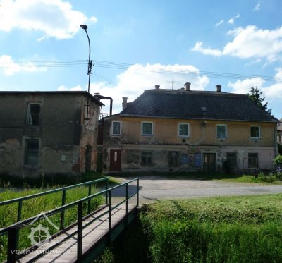 U budovy mlýna je patrné, kudy vedl náhon. Na bývalé lednici je přistavěna veranda.