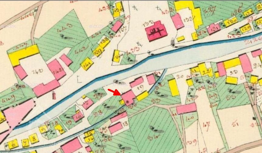 V roce 1930 je v objektu uvedeno stolařství. Nápis na budově dílny je Bau und Möbel Tischlerei - truhlářství  stavební a výroba nábytku. Majitelem byl Josef Fröhlich. Javornický potok se nazýval Haufbach.