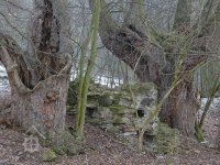 Podle fotek z února 2019 byl mlýn zděný, kamenné zdivo (HŠ)